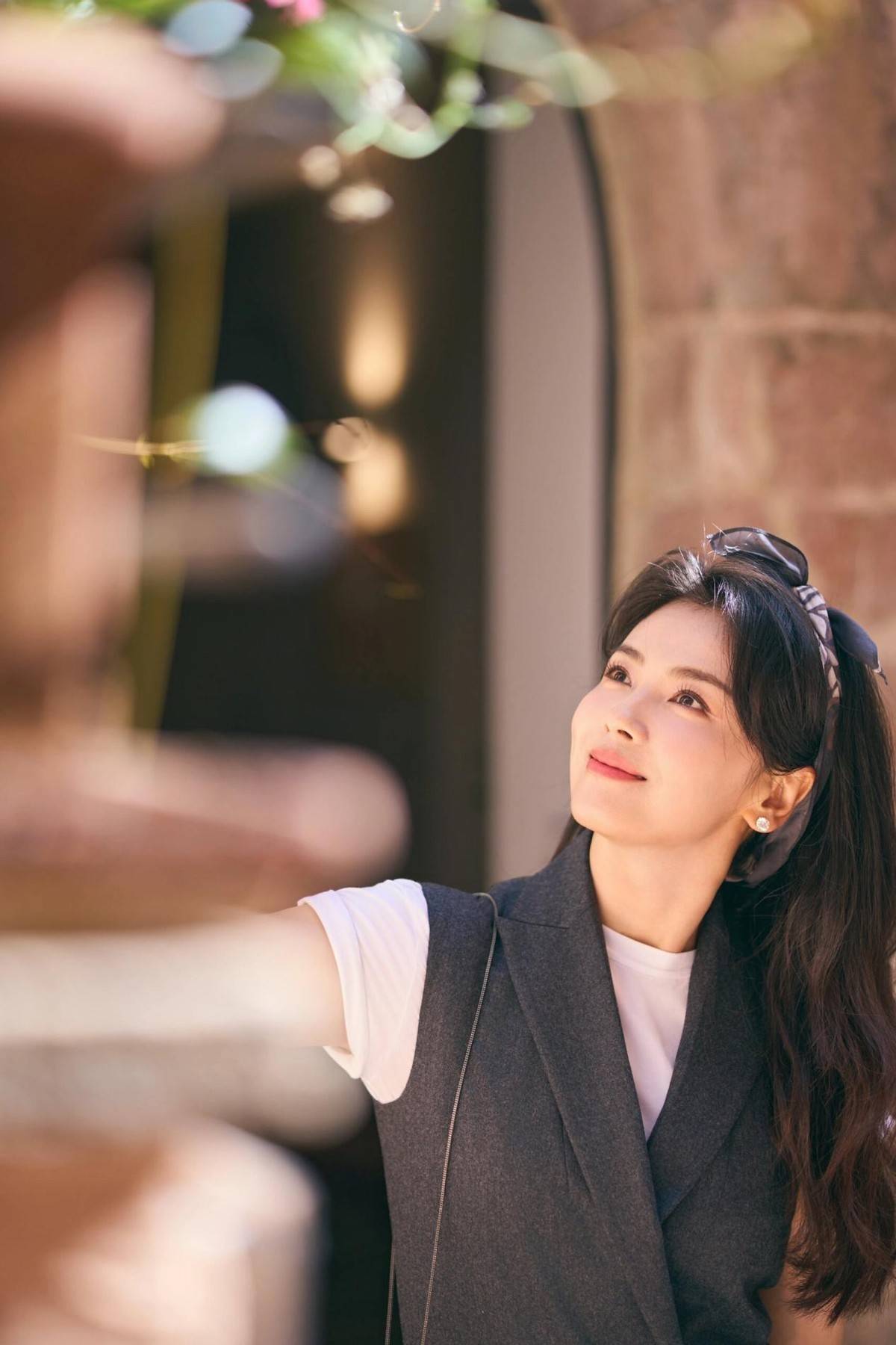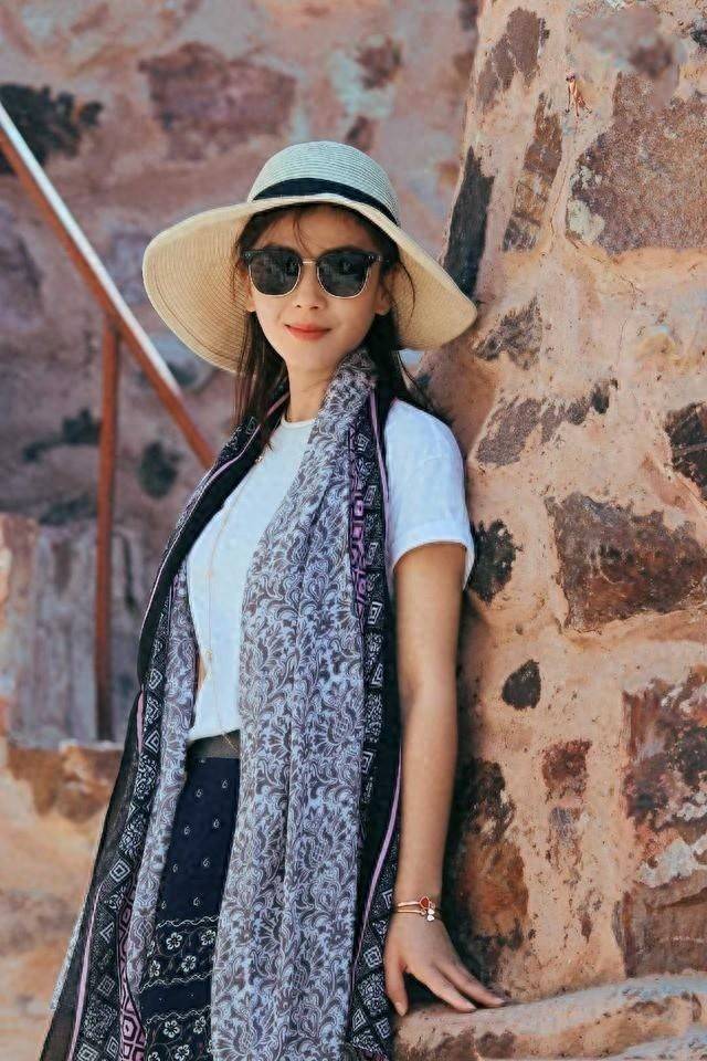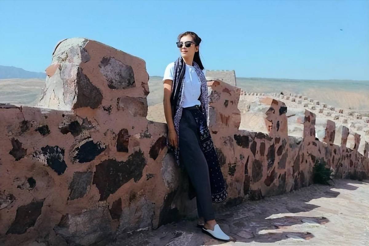 最为精妙的当属她搭配的丝巾和帽子。丝巾随意搭在肩头,行走时随风轻轻飘动,为简约的穿搭增添了几分灵动,瞬间让整体造型富有层次与细节,文艺气息扑面而来。而那顶宽檐帽同样巧妙,不仅为她遮挡了户外的阳光,更赋予搭配几分休闲慵懒的格调,融入长城的景色中,宛如从时尚杂志走出的大片主角。