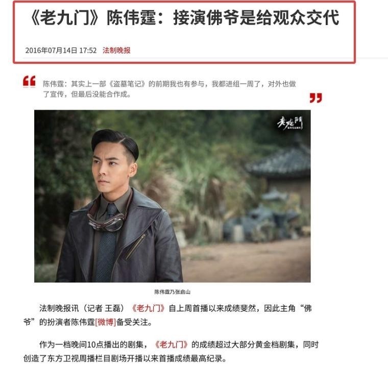 真正让他跻身顶流行列的,则是网络自制剧《老九门》。